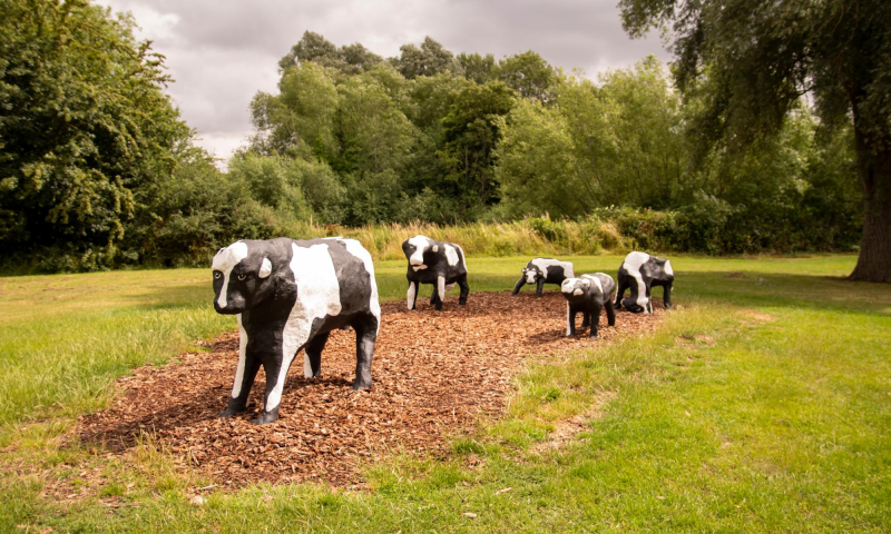 Starting at Milton Keynes Museum, this walk explores the area that inspired some of the city’s earliest community art, beginning with the museum’s own public artworks, including the original Concrete Cows created by community artist Liz Leyh and pieces by local sculptor Bill Billings.